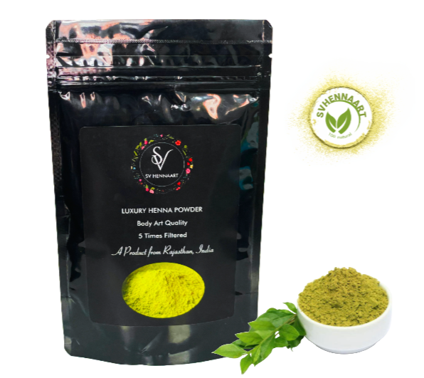 Soak SV Henna Powder in Luke warm water, add 30ml SV Essential oil and 30g Sugar per 100g henna & Stir well, cover and let sit for 5-6 hours. Apply to dry skin and let sit until dry. Overnight is suggested.